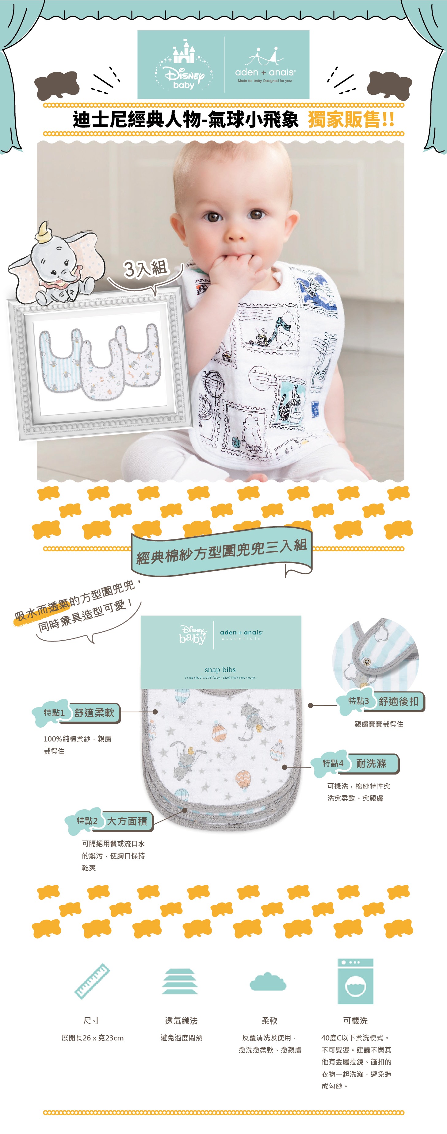 迪士尼經典棉紗圍兜(3入)-氣球小飛象(23X26公分)